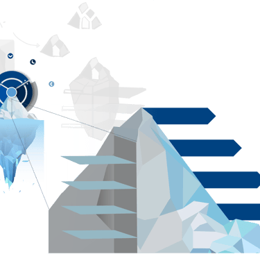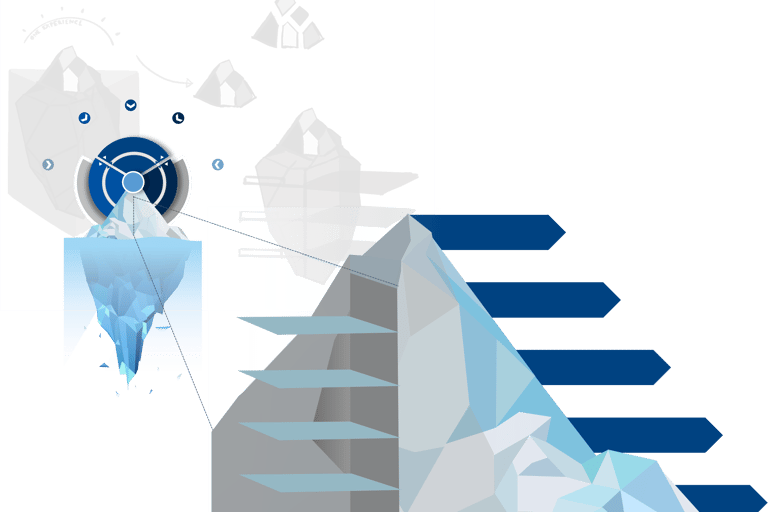 This project was about creating a single source of truth deck for product development, for internal communication. The challenge was to show that while each product is designed individually, together they deliver a seamless customer experience. I started exploring cube-like concepts, but ultimately landed on an iceberg metaphor: the visible experience above the surface sits on a shared organizational infrastructure below, quietly holding everything together.
